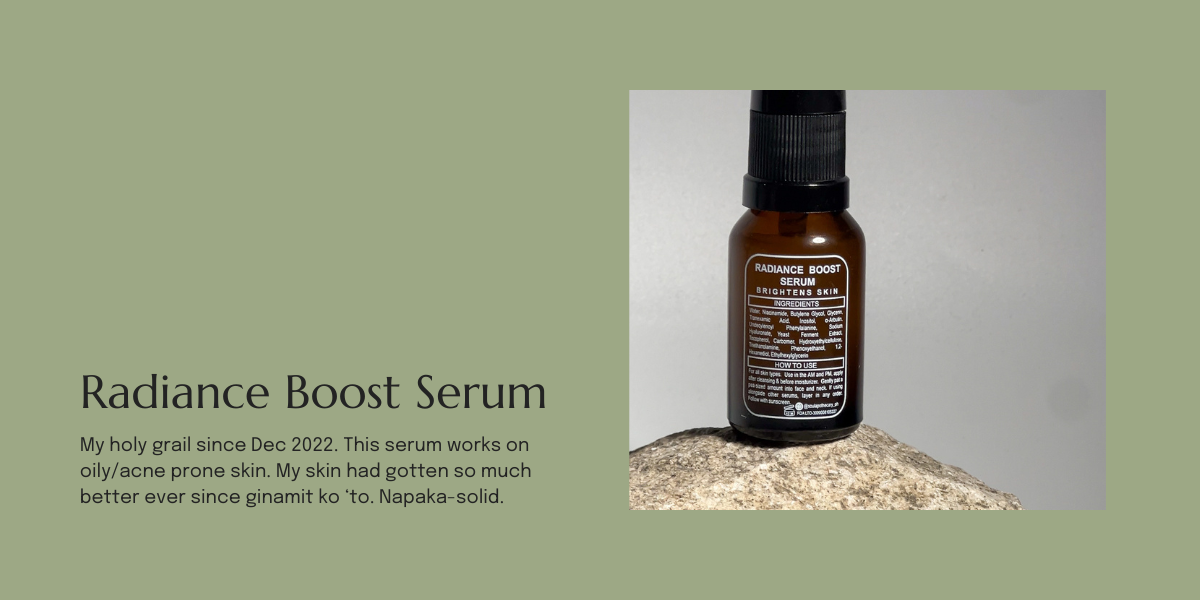 I love the Radiance Boost Serum. It's a trending product —and rightly so. I use it daily. It's lightweight, has no sticky feeling, and can be used with retinol!