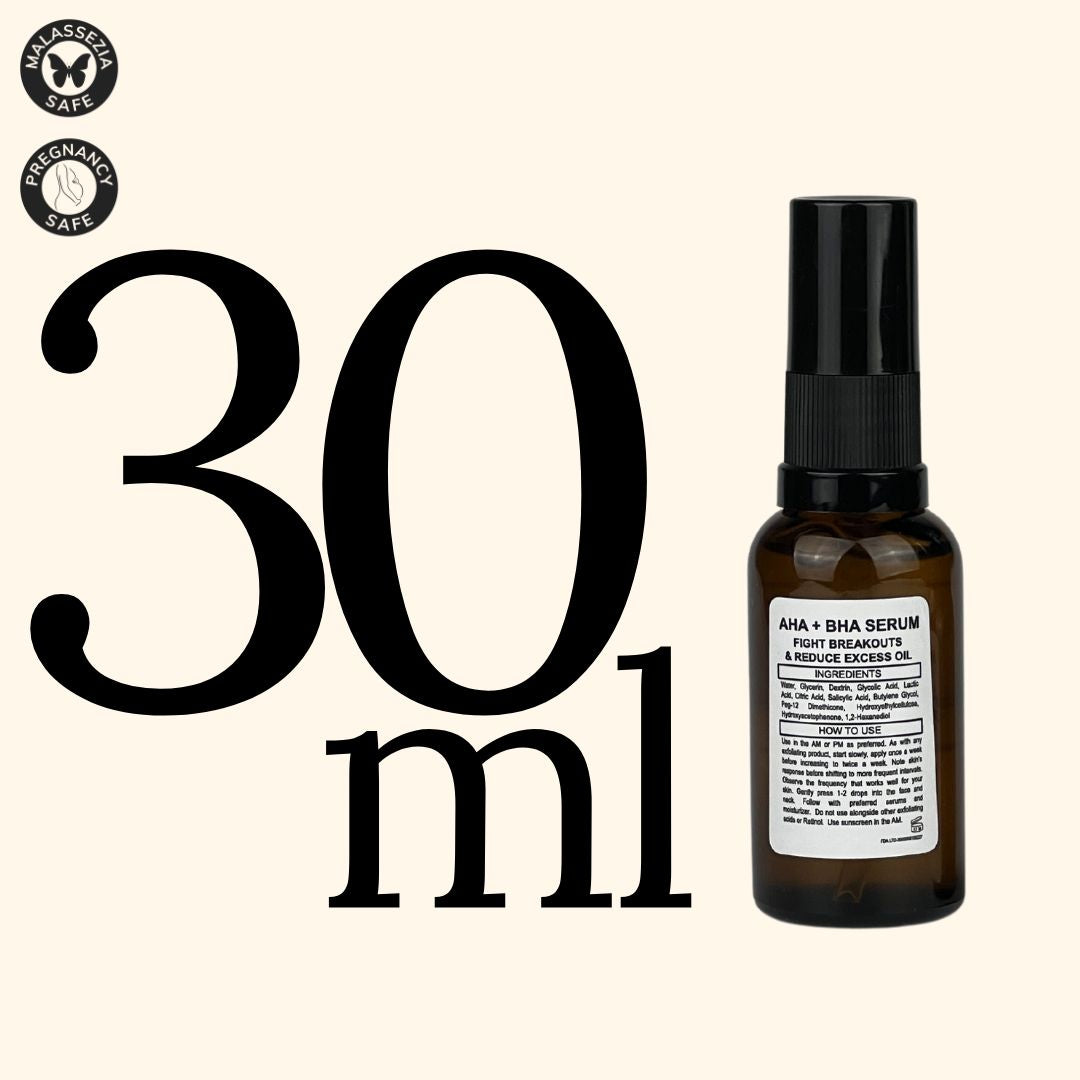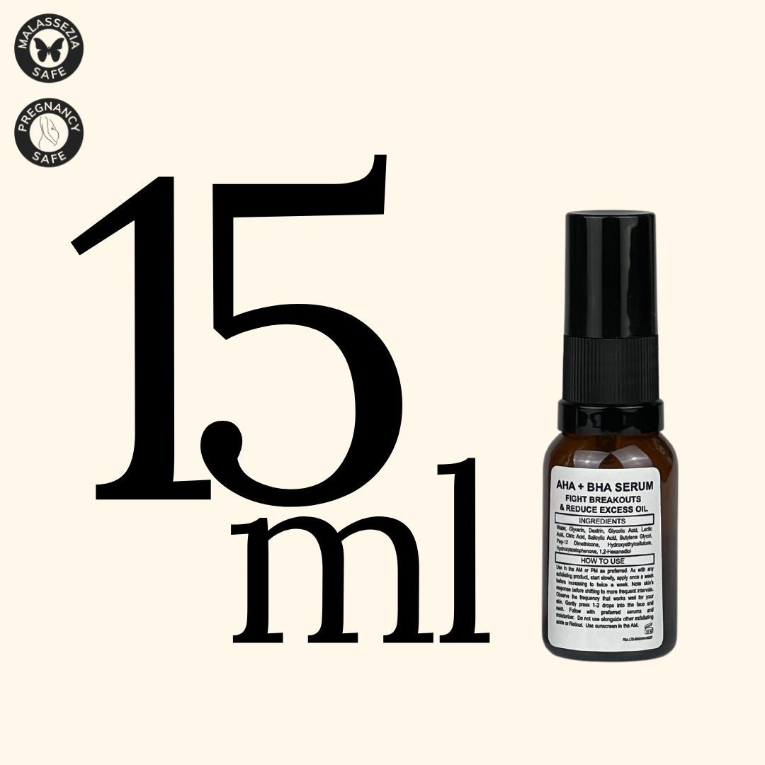 Our AHA + BHA Serum is your solution for clear, healthy-looking skin. The powerful blend of alpha and beta hydroxy acids removes dead skin cells, unclogs pores, and reduces excess oil, while brightening your complexion and improving skin texture and pigmentation.
